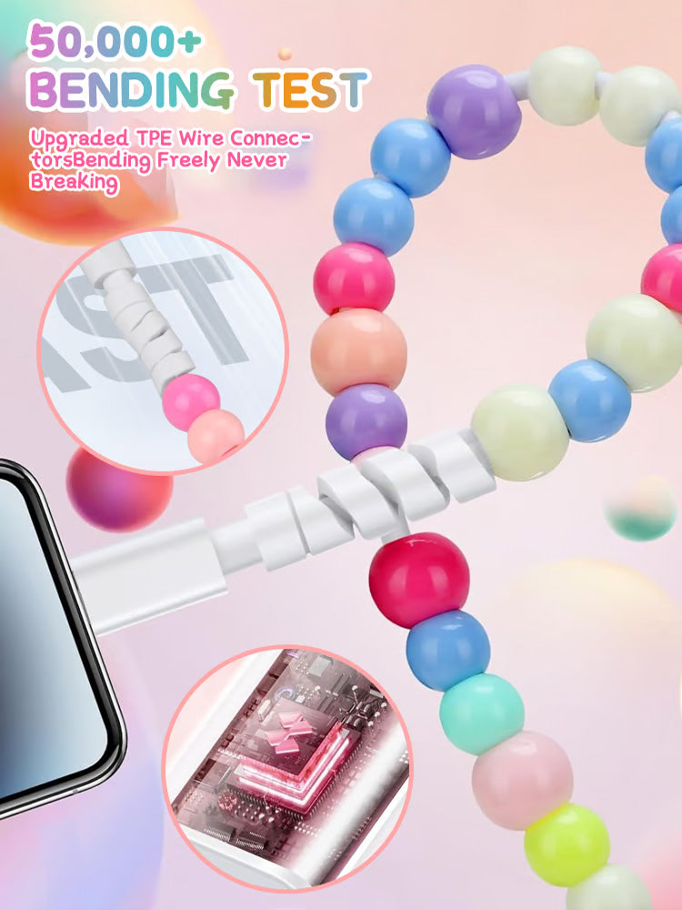 SÄ fort jag sÄg den blev jag fÀngslad av dess unika pÀrlformade design. De fÀrgglada pÀrlorna ger den ett sÄ snyggt utseende, vilket gör att min laddningskabel sticker ut som en trendig accessoar.
