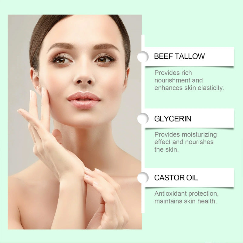 Djup fuktighet: Ekologisk grÀsmatad nötkötttalg levererar viktiga vitaminer och fettsyror för att Äterfukta och ÄterstÀlla din huds naturliga lyster.