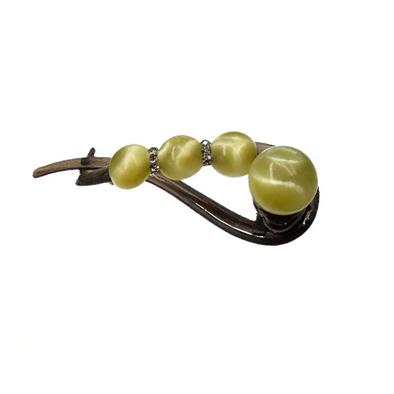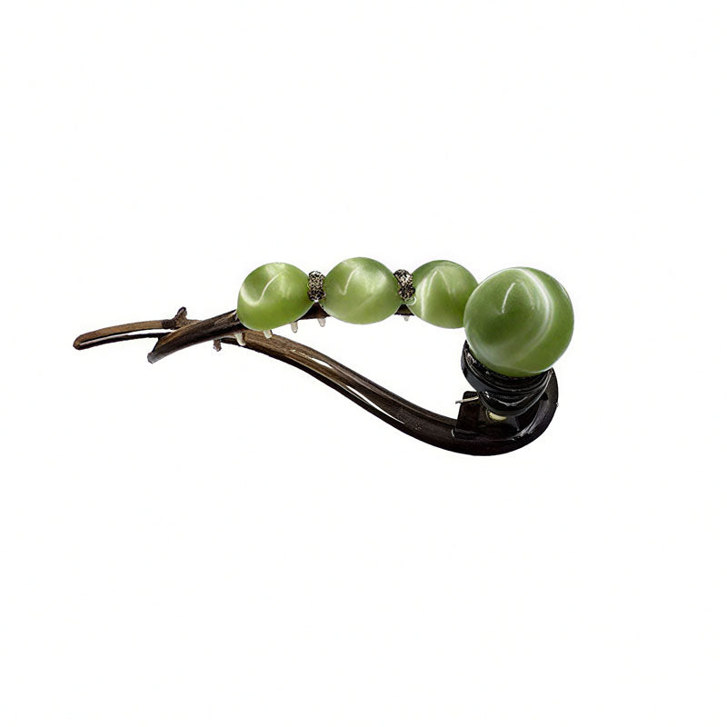 PÄRLDETALJ I KATTÖGA: Detta hårspänne är utsmyckat med flera pärlor med en fängslande kattögoneffekt och ger en delikat och elegant touch till din look. Den skimrande finishen fångar ljuset vackert och ger en raffinerad stil som enkelt blandar sofistikering med vardagskläder.