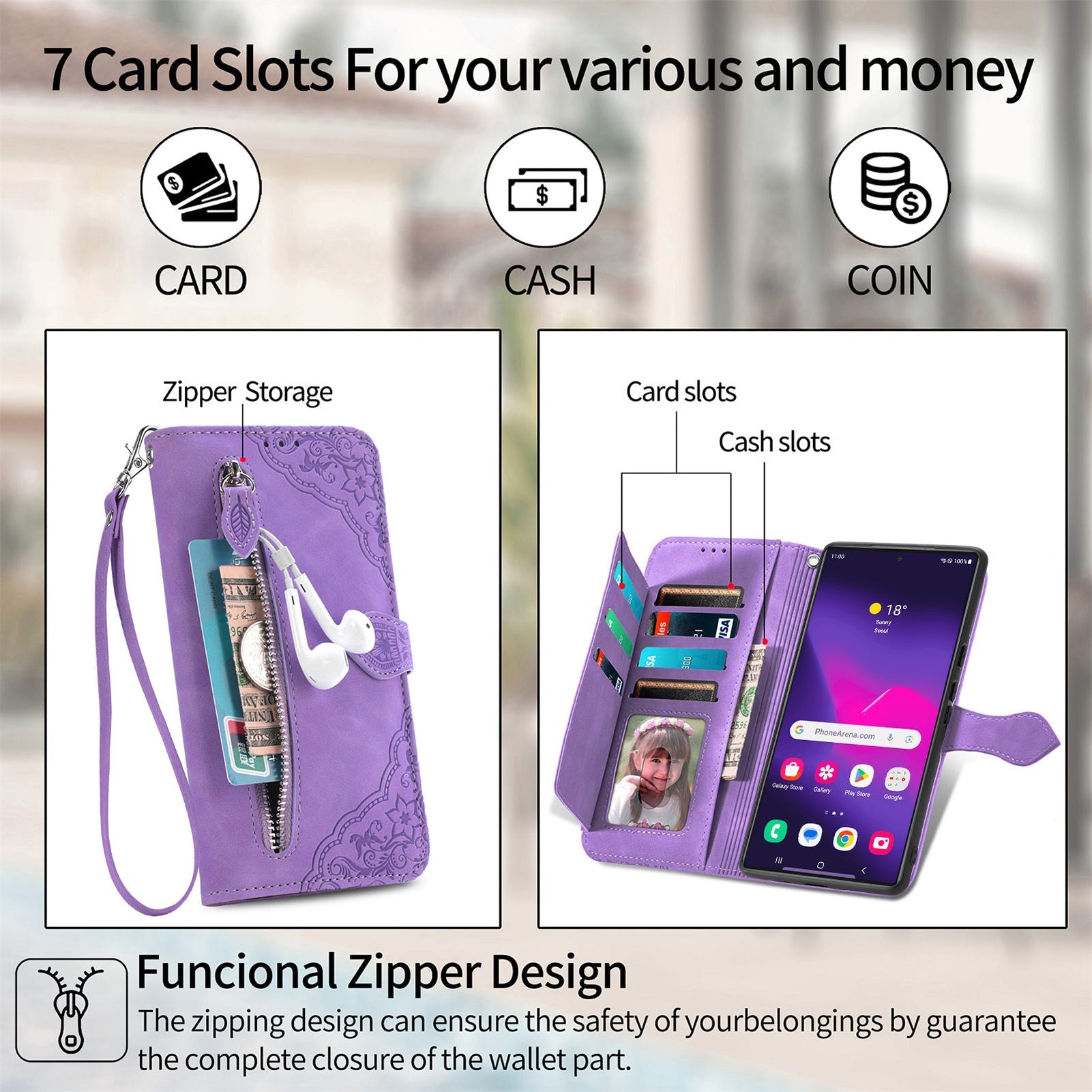 Varför bära en separat plånbok när du kan ha allt i en? Det här fodralet har 7 kortfack och en kontantficka, så att du kan bära med dig allt du behöver utan att det blir för stort. Dragkedjan ser till att dina tillhörigheter är säkra, medan kortfacken och kontantfacken erbjuder gott om förvaring.