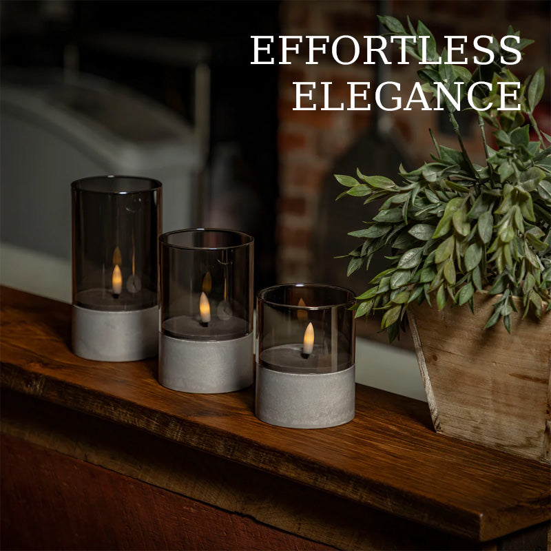 Förvandla ditt utrymme med Gray Glass LED Candles, en uppsÀttning med tre avtagbara guldglasöverdrag i kombination med baser i cementimitation. Oavsett om det Àr en uteplatsfest, en mysig kvÀll vid den öppna spisen eller ett avkopplande bad, tillför dessa LED-ljus din omgivning vÀrme och sofistikering.