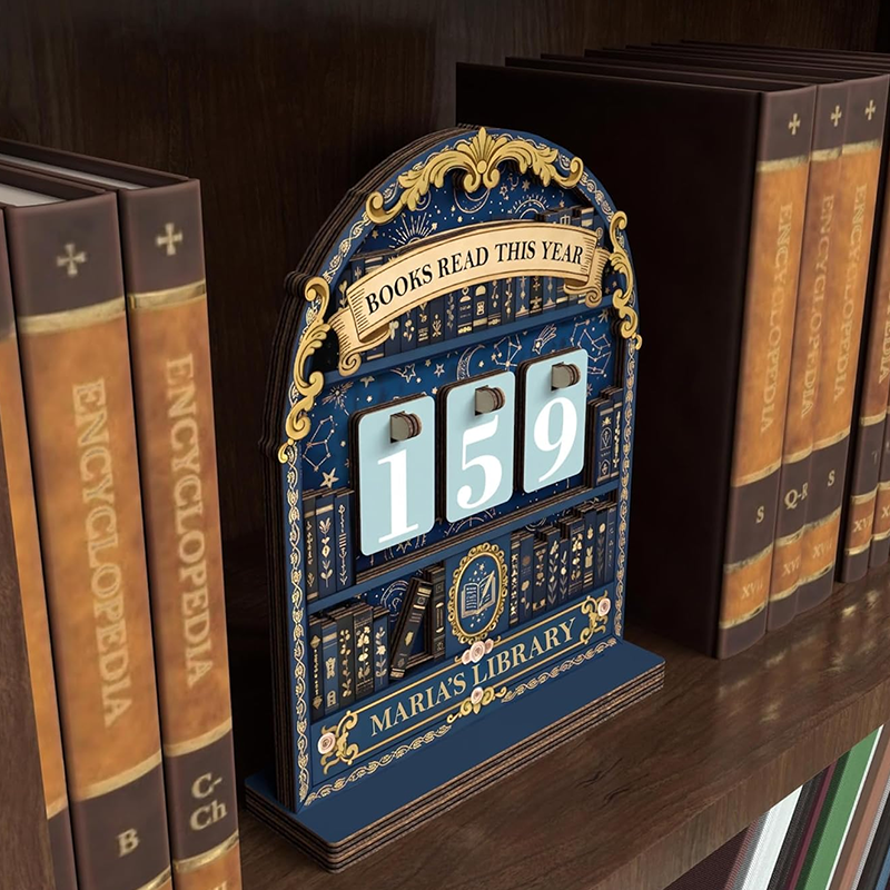 This charming wooden countertop stand is more than just a decoration—it's a source of motivation for bookworms. Watch your number grow with every story you read, creating a vivid reminder of your literary journey through the year. Perfect for your bookshelf, desk, or nightstand. 🤓