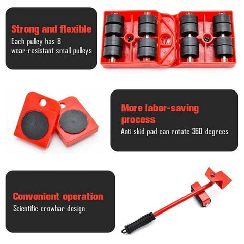 Med en lyftanordning och fyra glidskenor löser möbelflyttverktygen detta problem. Lyft och placera dina möbler på glidarna och skjut dem sedan enkelt. 8 tysta hjul (varje glidare) sparar energi och skyddar golvet. Friktionsgummikuddar säkerställer stabil placering och skadar inte möblerna. Den maximala bärförmågan är upp till 100 kg. Med den kan du ändra möblernas position när du vill.