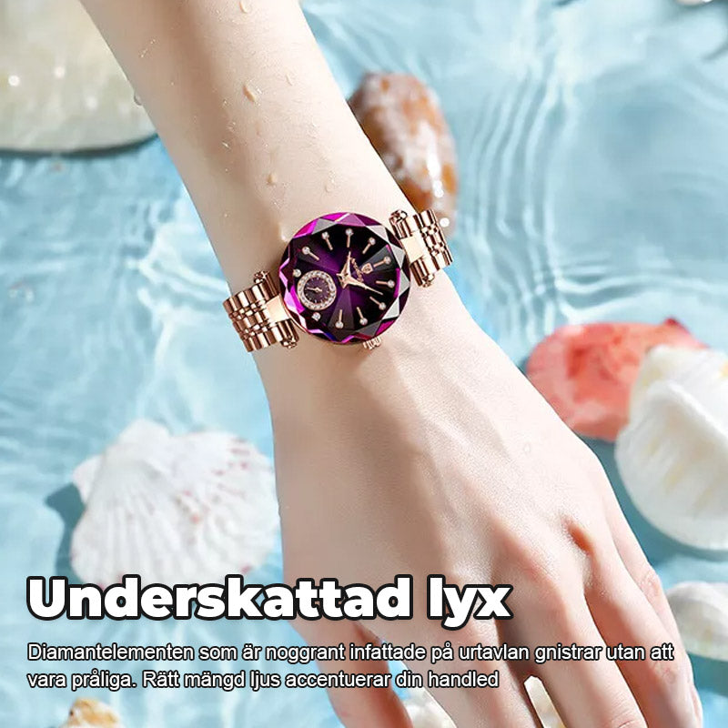 Diamantelementen som är noggrant inlagda på urtavlan är gnistrande men inte pråliga. Rätt mängd ljus pryder din handled, vilket gör att du kan visa elegans och självförtroende i varje rörelse du gör.