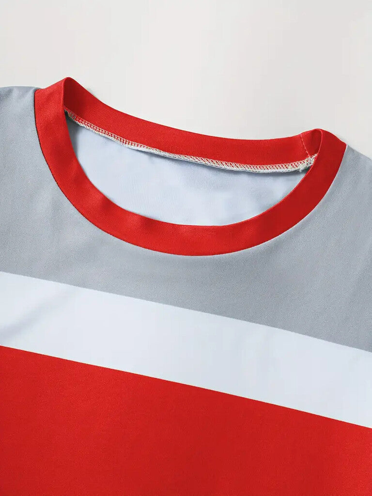 - 1 x Stylish And Unique Striped Print Round-Neck Long-Sleeved Top And Long Pants Set.