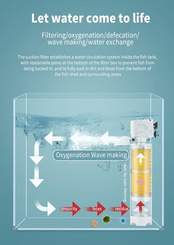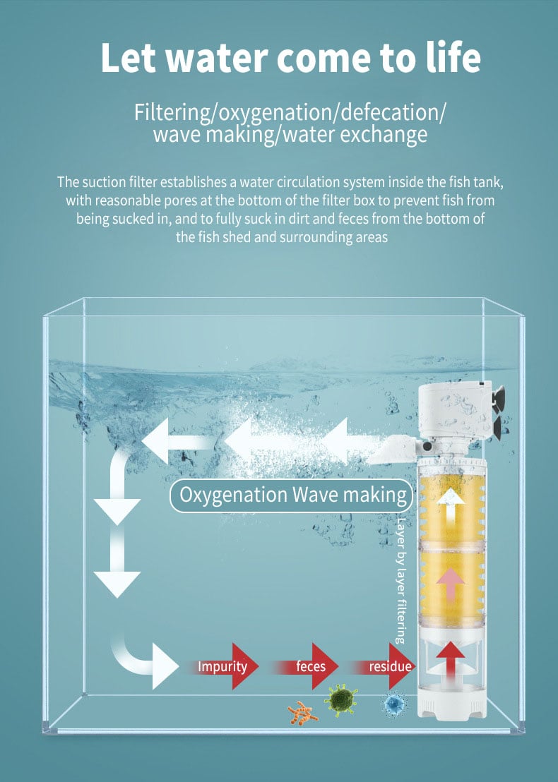 FrÀmja ett blomstrande undervattensekosystem med förbÀttrade syrenivÄer. Ultimate Tank Filter renar inte bara vattnet utan pumpar ocksÄ in syre i det, vilket skapar en hÀlsosammare livsmiljö för dina vattenlevande husdjur.