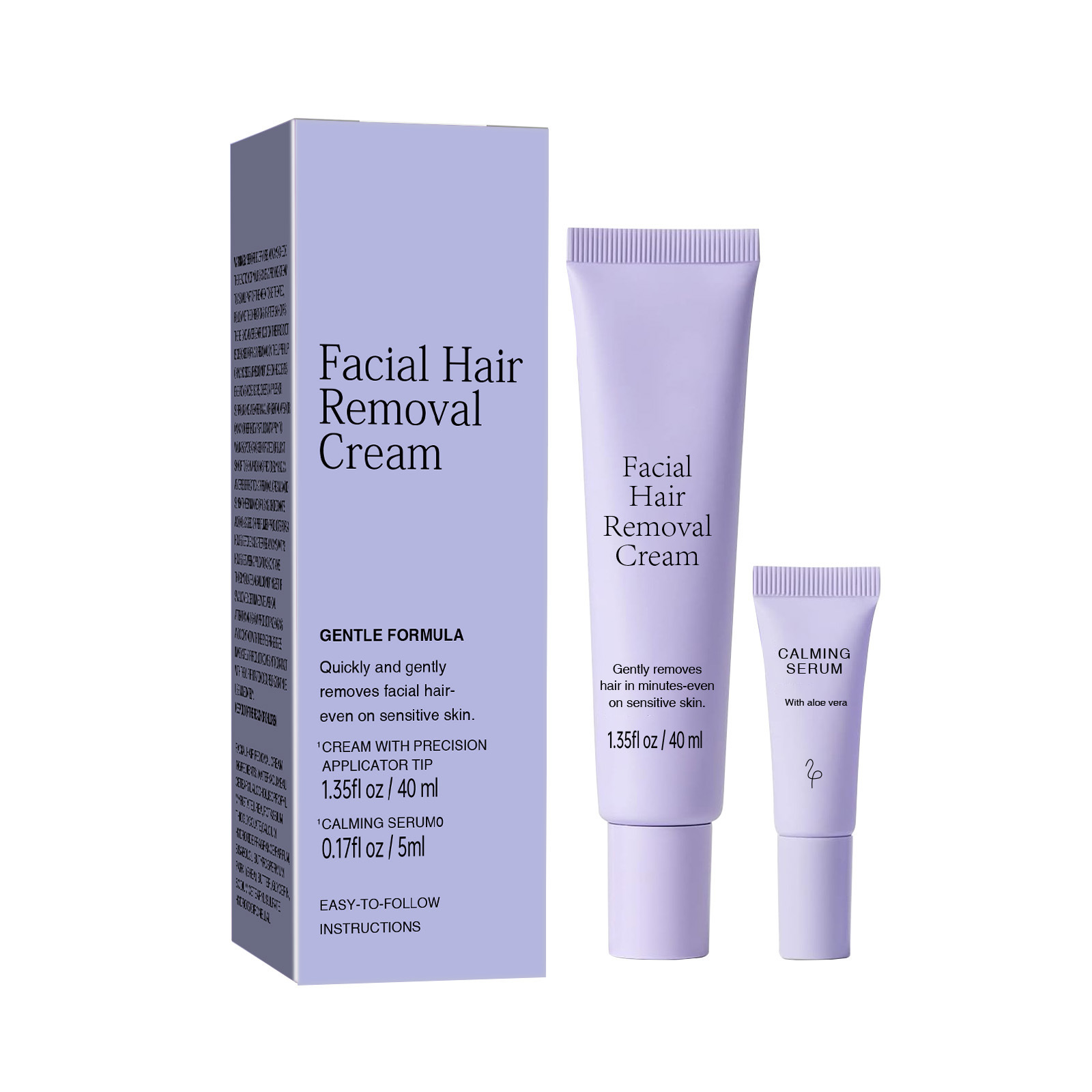 aktiva ingredienser bryter effektivt ner även grovt ansiktshår vid roten utan smärta. Den är lämplig för persikofluff, överläppshår, hak- och käklinjehår - oavsett tjocklek.